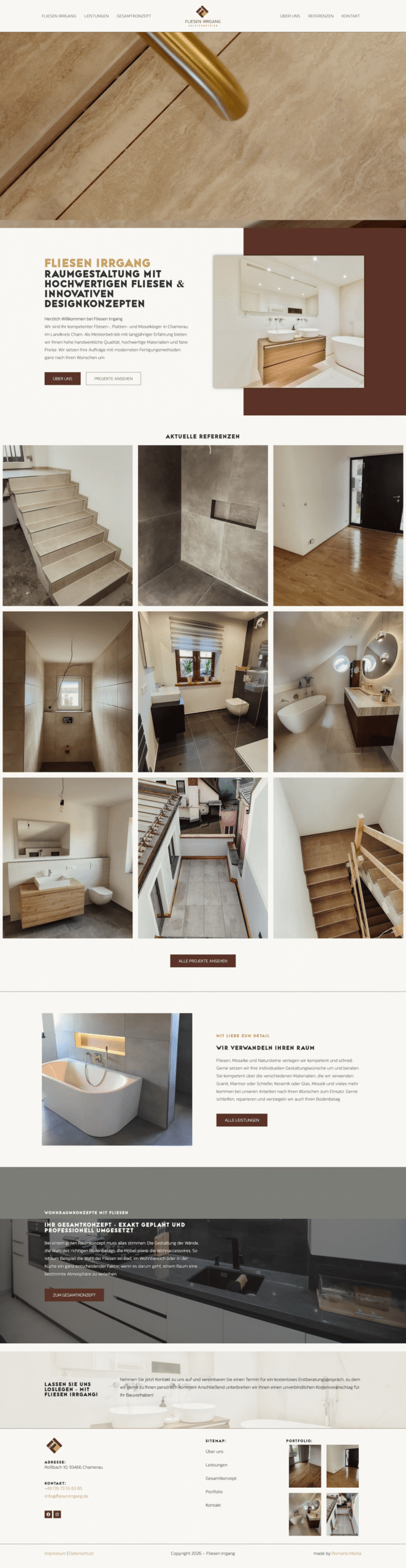 Für das neu gegründete Unternehmen Fliesen Irggang in Chamerau entwickelten wir eine professionelle, suchmaschinenoptimierte Website mit klarer Leistungsdarstellung und Portfolio-Bereich.